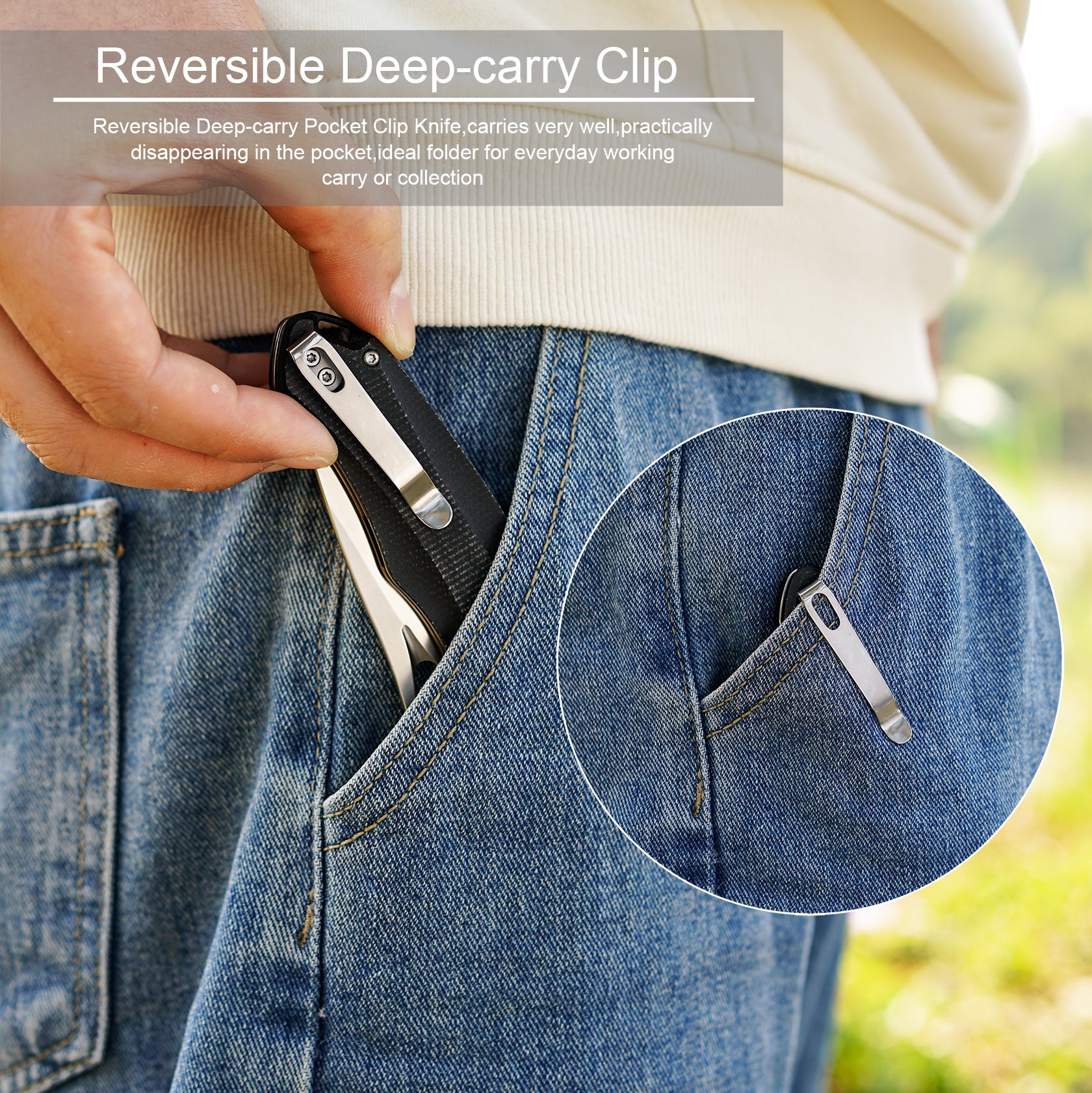 - Reversible Deep-carry Pocket Clip Knife:The knife comes with a pocket cli,but it carries very well, practically disappearing in the pocket,ideal folder for camping, hunting, hiking outdoor activities,everyday working carry or collection