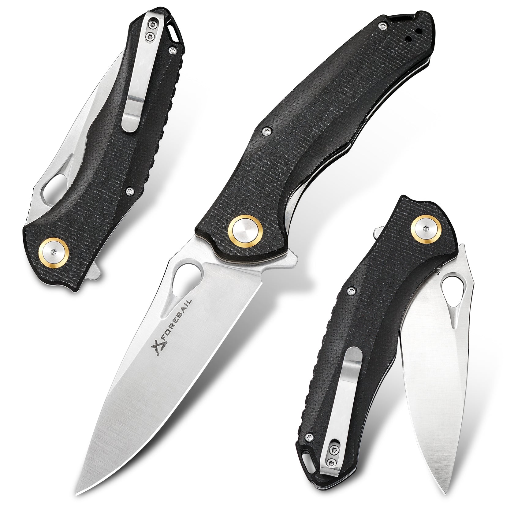 FORESAIL Practical Pocket knife made with 3.62inch14C28N blade and 4.8inch Micarta handle with Reversible Deep-carry Pocket Clip, Flipper. For Outdoor Camping and Gift, EDC Knife