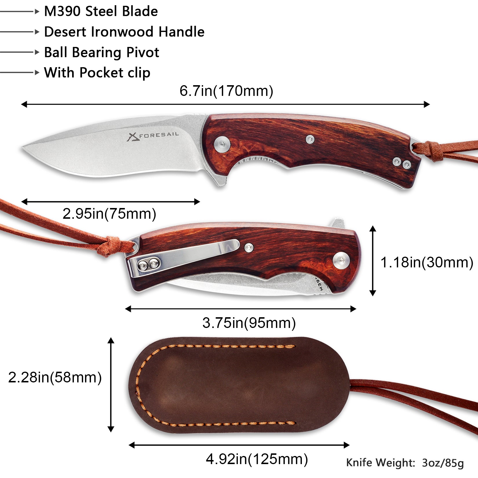 - Solid Pocket Knife: High Quality Austrian M390 blade,The blade hardness 60-61HRC, provides good balance of razor sharp cutting performance and high toughness. Ergonomic handle for comfortable and stiff grip, excellent low moisture absorption and chemical reistance