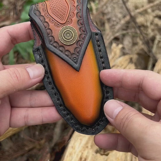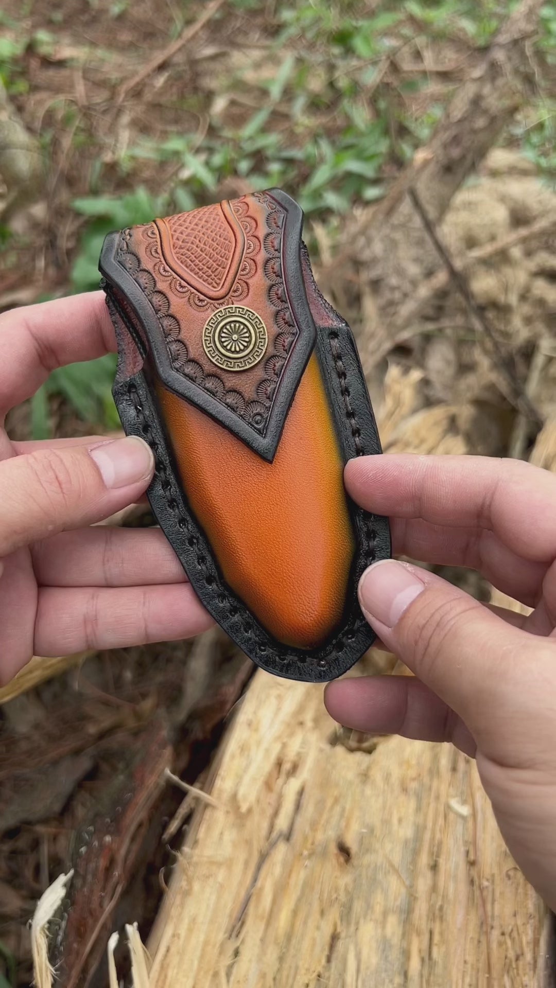 - 【Elegant leather jacket】 It is made by hand craftsmen, carved and sewn. It is beautiful and convenient to carry. It is small and practical. The knife can be easily carried by folding it and putting it in the pocket. It can also be used as a gift or collection,